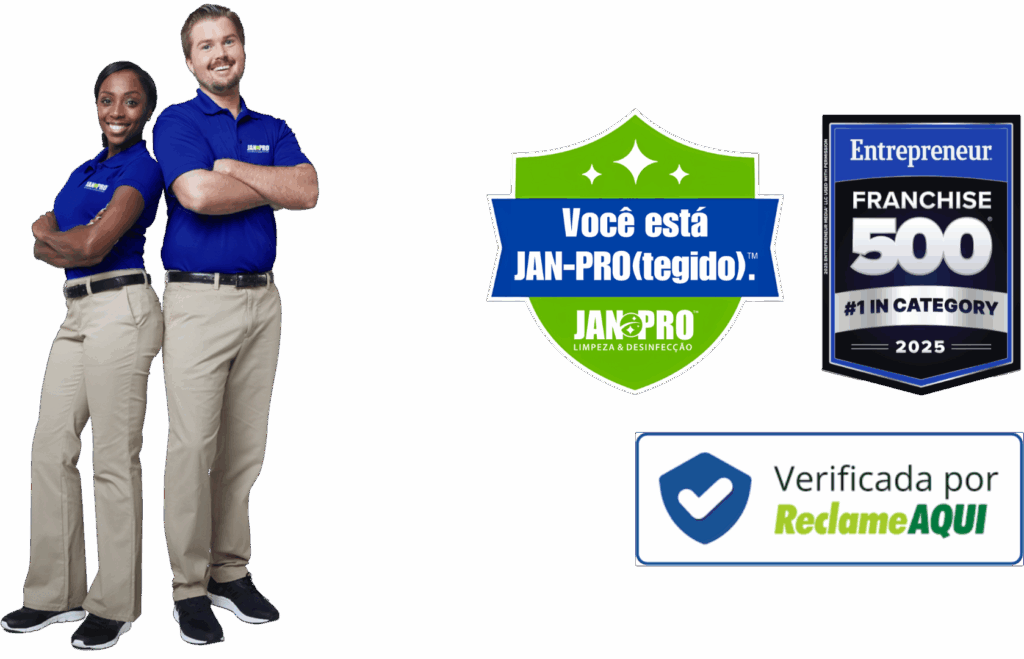 Somos uma empresa líder em serviços de limpeza e desinfecção comercial. Com mais de 30 anos de experiência, a Jan-Pro é uma das maiores empresas de limpeza comercial do mundo, com presença em 8 países e mais de 10.000 franquias certificadas. A sede internacional é nos Estados Unidos, e no Brasil estamos há 15 anos.
